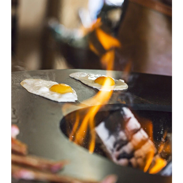 Une fois le bois placé au centre du brasero, il vous suffit de l’allumer pour que la plaque commence à chauffer. Grâce à la chaleur irradiante, l’intensité de cuisson n’est pas la même lorsque vous rapprochez les aliments du feu que lorsque vous vous rapprochez du bord. Vous pouvez ainsi profiter de toute une gamme de chaleur différente, et ce sur une même plaque !