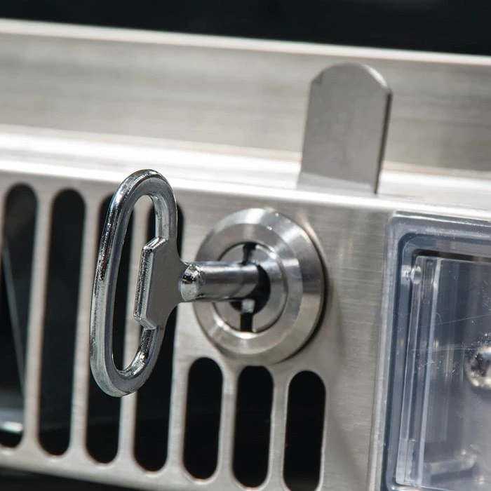 Construit en acier inoxydable, ce meuble est solide et durable qu’il soit utilisé en intérieur ou en extérieur. Sa fermeture est sécurisée par une clé, ainsi pas de vol. Sa structure est waterproff indice IP24.